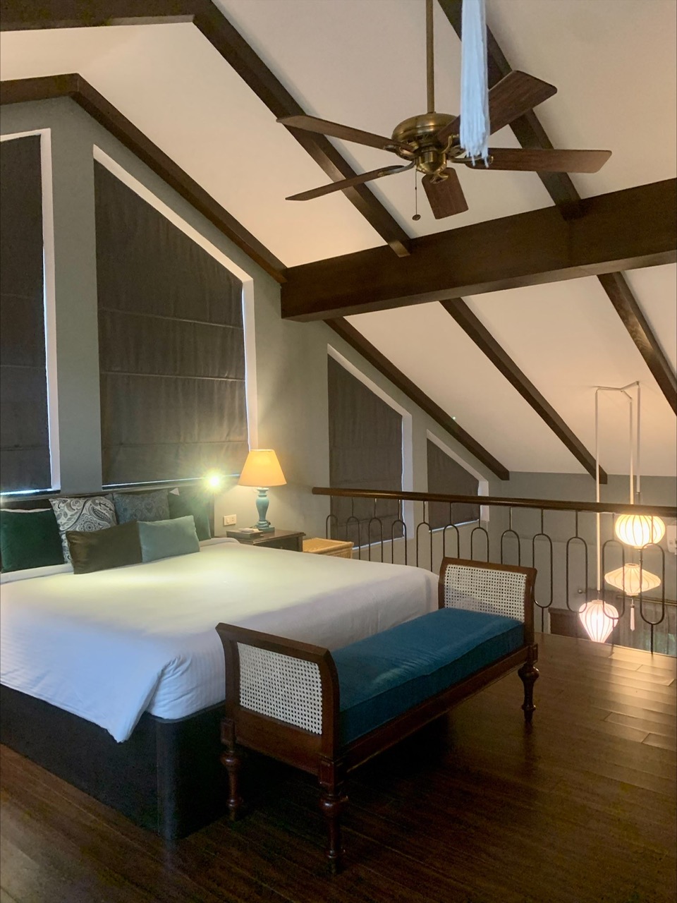 Spanning the uppermost two floors, with a king size bed on upper floor and 2 twin beds downstairs; the Duplex Suite Balcony is a great choice for a family or a group of friends up to 4 or 5 people. The room has a balcony and windows with views of surrounding gardens, two en-suite bathrooms with rain shower. An extra rollaway bed is available upon your request.
